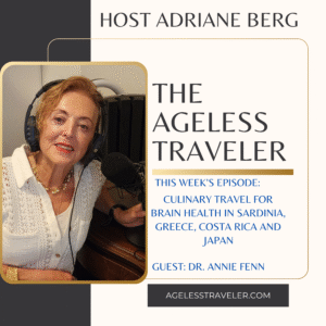 Now you can combine brain health protocols with terrific fun trips! In this week’s episode of The Ageless Traveler, I interviewed Dr. Annie Fenn, a physician turned culinary expert, and author to discuss the fascinating intersection of brain health, world-wide culinary practices and travel.