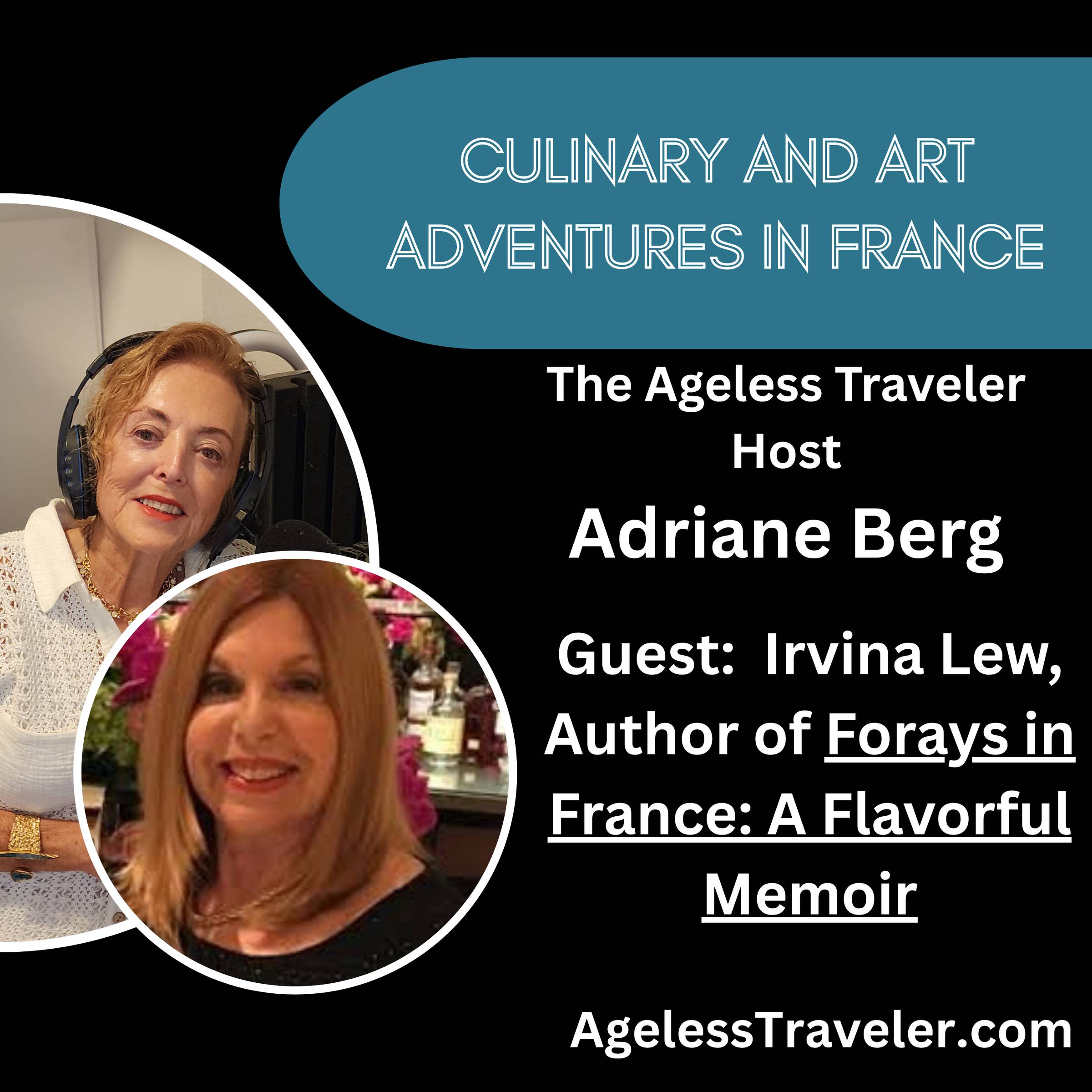 This week’s podcast represents all I hoped for when I started The Ageless Traveler. I feature Irvina Lew, an 86-year-old travel writer who shares her culinary adventures across France. We discuss highlights of her upcoming book, Forays in France: A Flavorful Memoir, her latest book that adds a delicious twist to her travel tales. Check out our list of where to eat and stay in France curated by lrvina, in our Culture Vulture section of this week’s Newsletter.